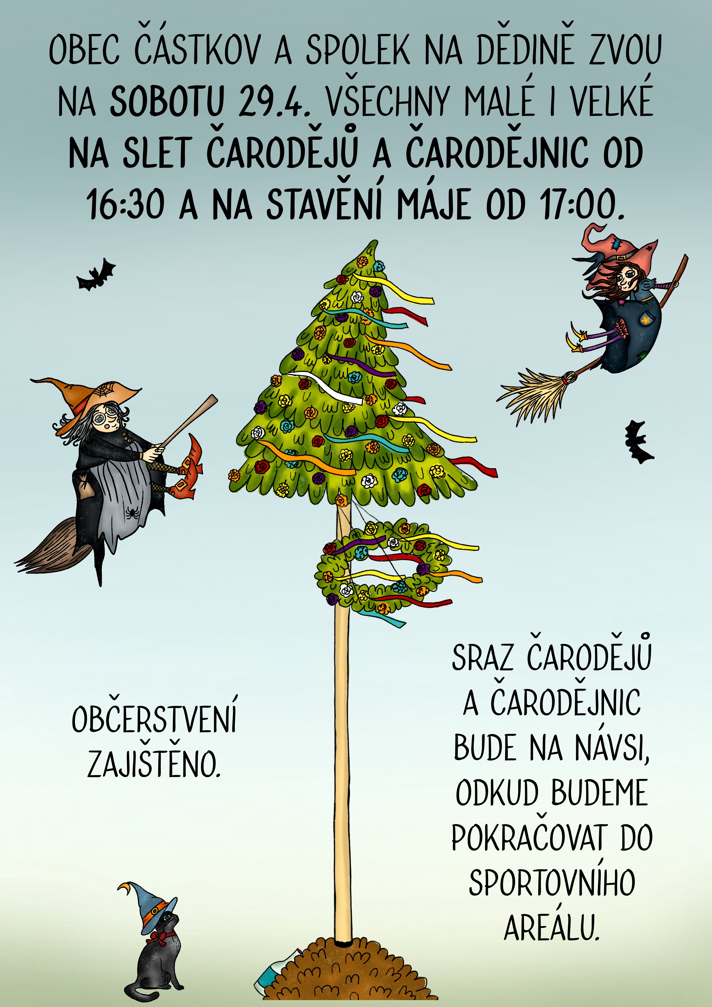 Pozvánka na slet čarodějů a stavění máje viz příloha.